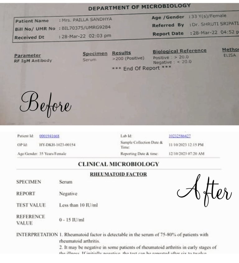 Rheumatoid arthritis Before and after treatment